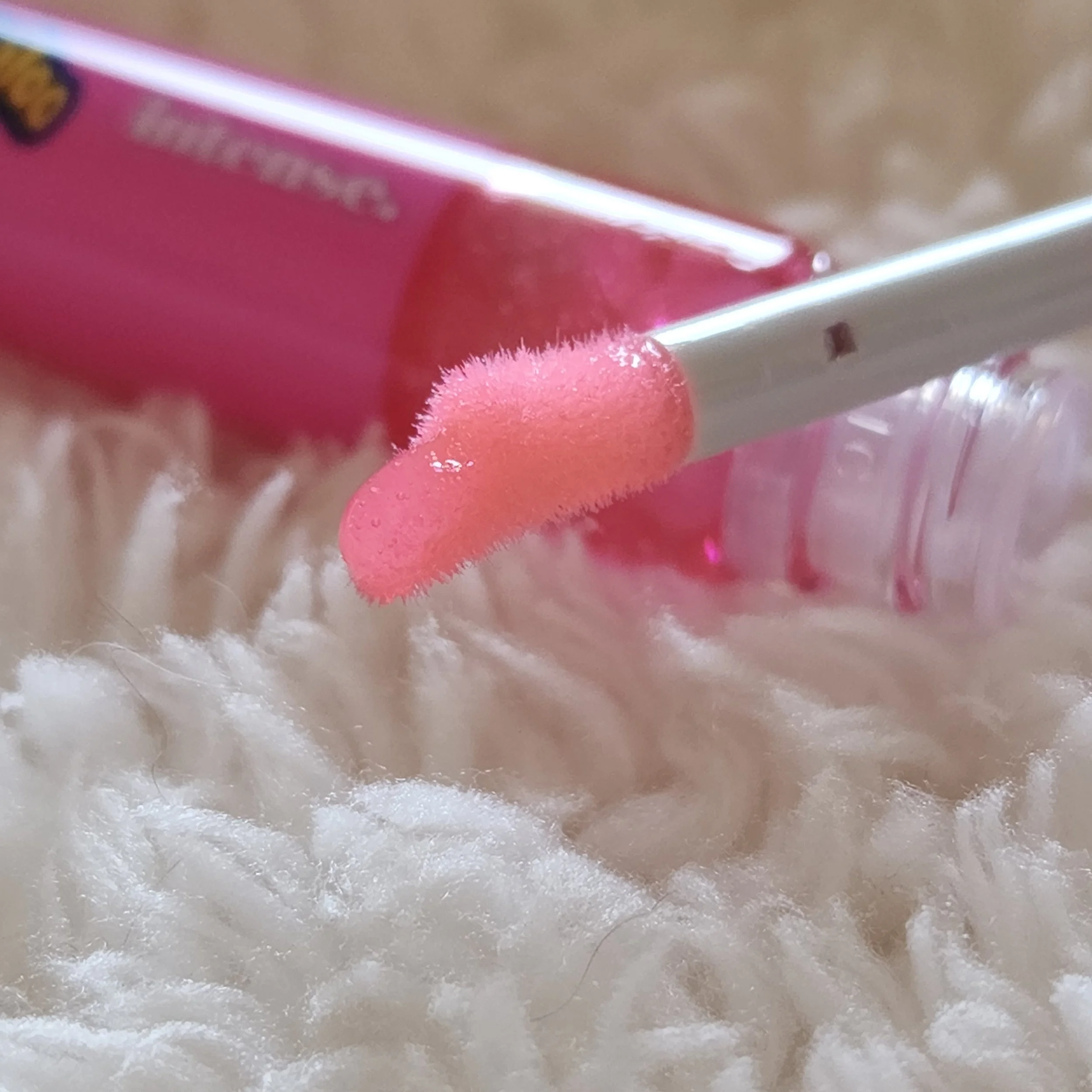 O produto também não entrega nenhuma cor, é mais um brilho molhado mesmo e tá tudo bem, afinal, ele não é um tint ou coisa assim, é apenas um brilho labial e acaba saindo um pouco rápido dos lábios.
